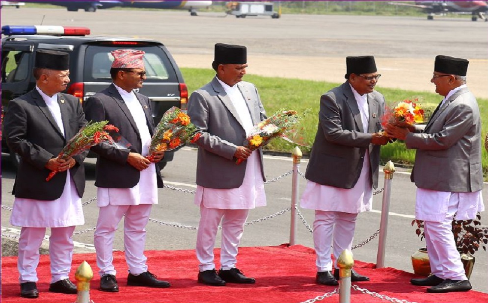 मन्त्रीगण, नेपाल सरकारको उच्चपदस्थ अधिकृत, सुरक्षा निकायका प्रमुख, नेपालस्थित कुटनीतिक नियोगका प्रमुख पनि प्रधानमन्त्रीको स्वागतका लागि विमानस्थल पुग्नुभएको थियो । प्रधानमन्त्री ओलीले जेठ २७ गते आइएलओको शतवार्षिकीका अवसरमा जेनेभामा आयोजना भएको विशेष समारोहमा भाग लिनुका साथै बेलायत र फ्रान्सको औपचारिक भ्रमण गर्नुभएको थियो ।