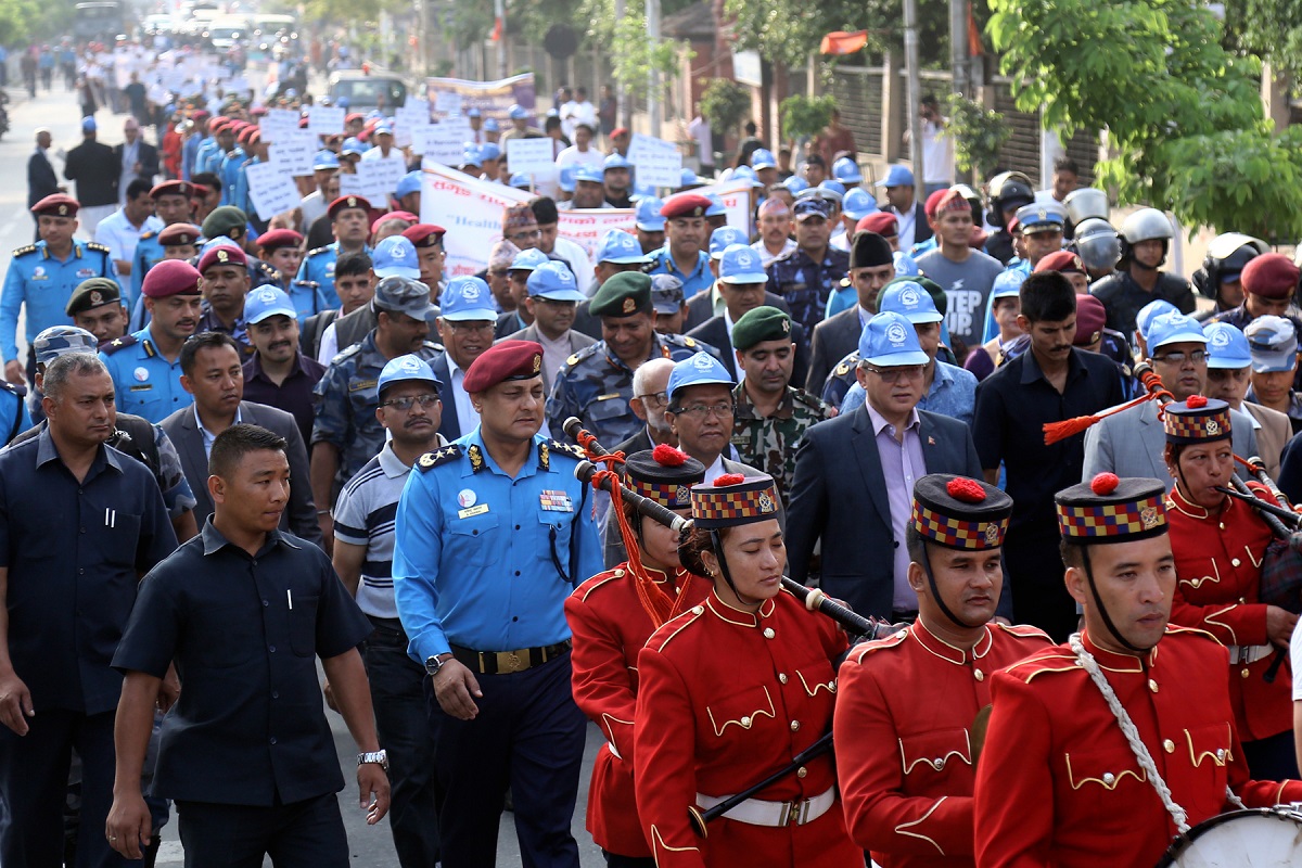 पदयात्रामा गृहमन्त्री रामबहादुर थापालगायत प्रहरी महानिरिक्षक खनाल सहभागी